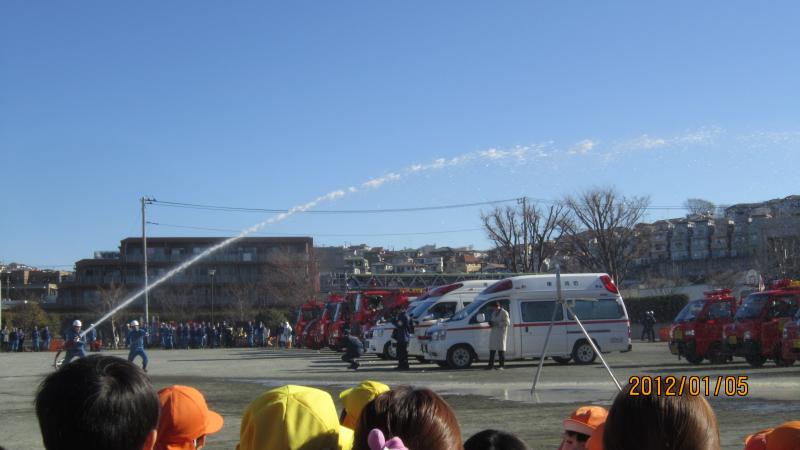 今日はその消防車がたくさん見られるよ!楽しみだね!と、出初式へ出発しました。