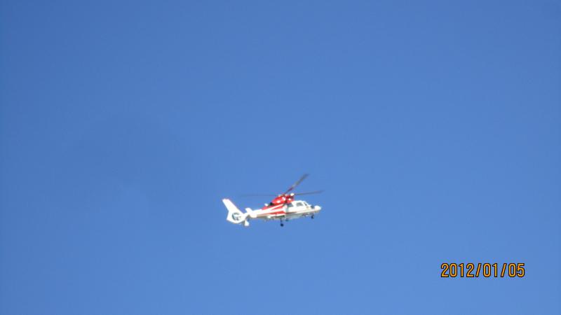 そして大きな音と風とともに、やってきましたヘリコプター!!