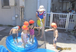 今年も、バルコニーや園庭で、みんなでお水遊びを楽しみました。