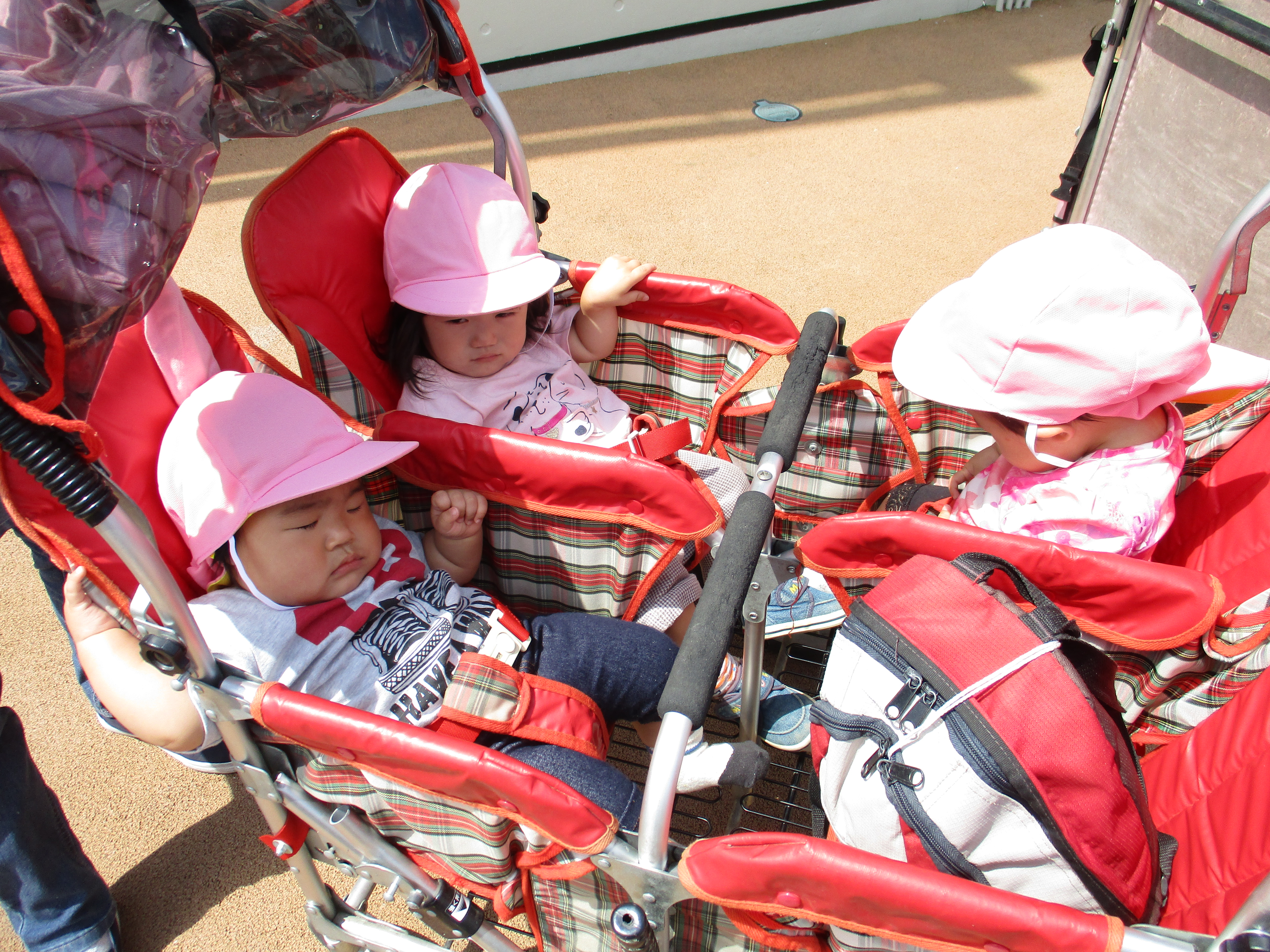 バギーの揺れにゆったりと眠ったり周りの様子を窺ったりしていました。