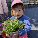 大北公園に遊びに行ったら、地域のおじさんがお花をくれました。