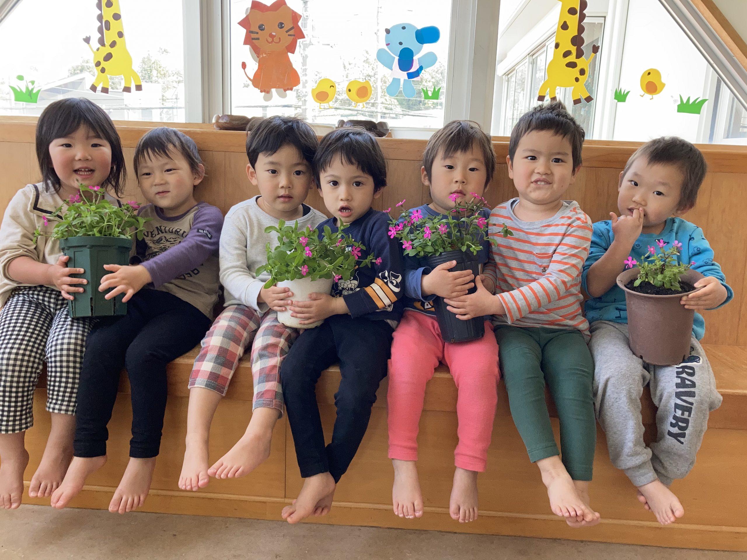 保育園に持って帰り、かもめ組さんが記念写真を撮りました。