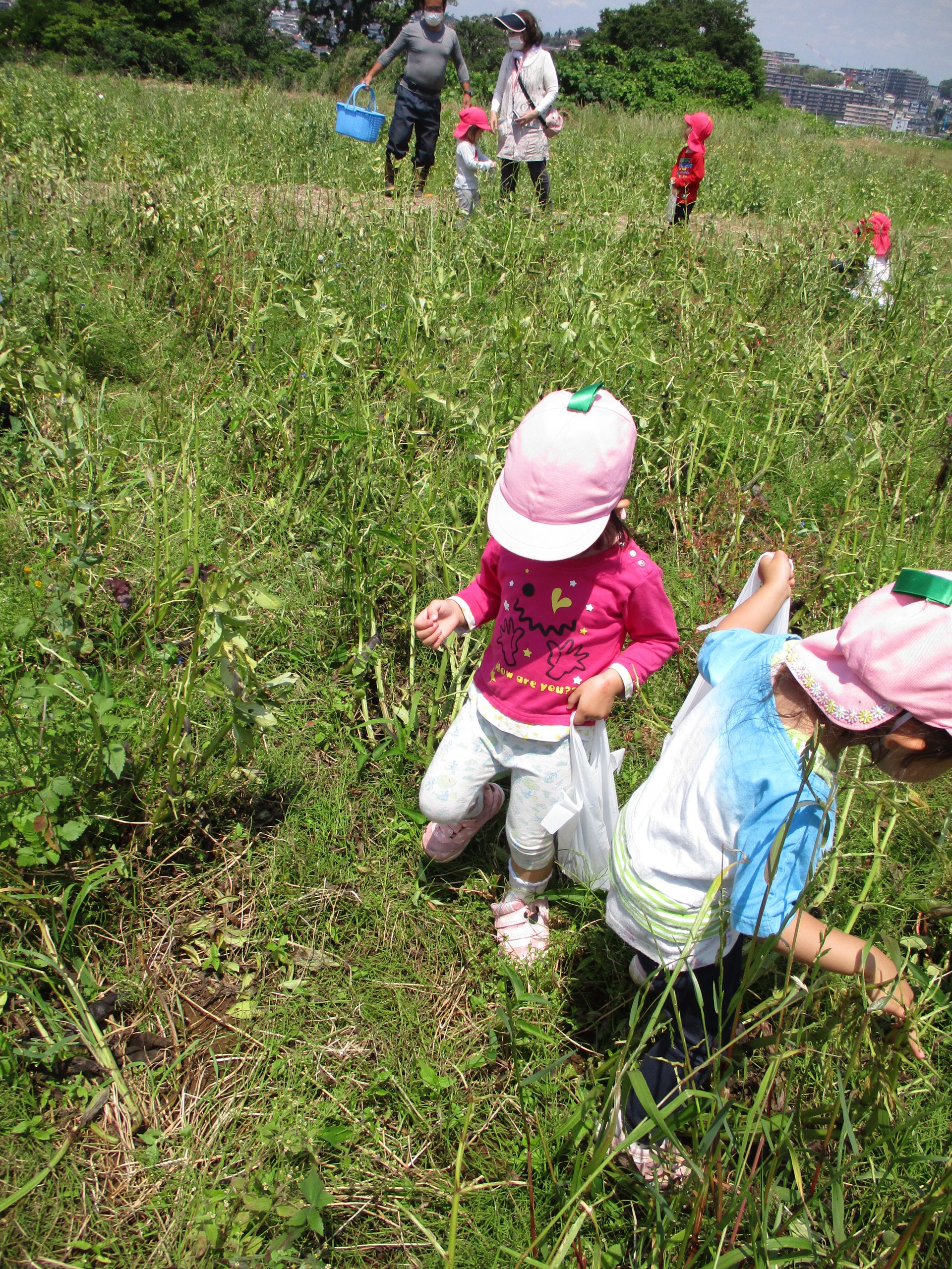姉妹園のコスモス保育園のみんなが来るまでは農園内を駆け回ったりいいもの探しをしたりしました!
