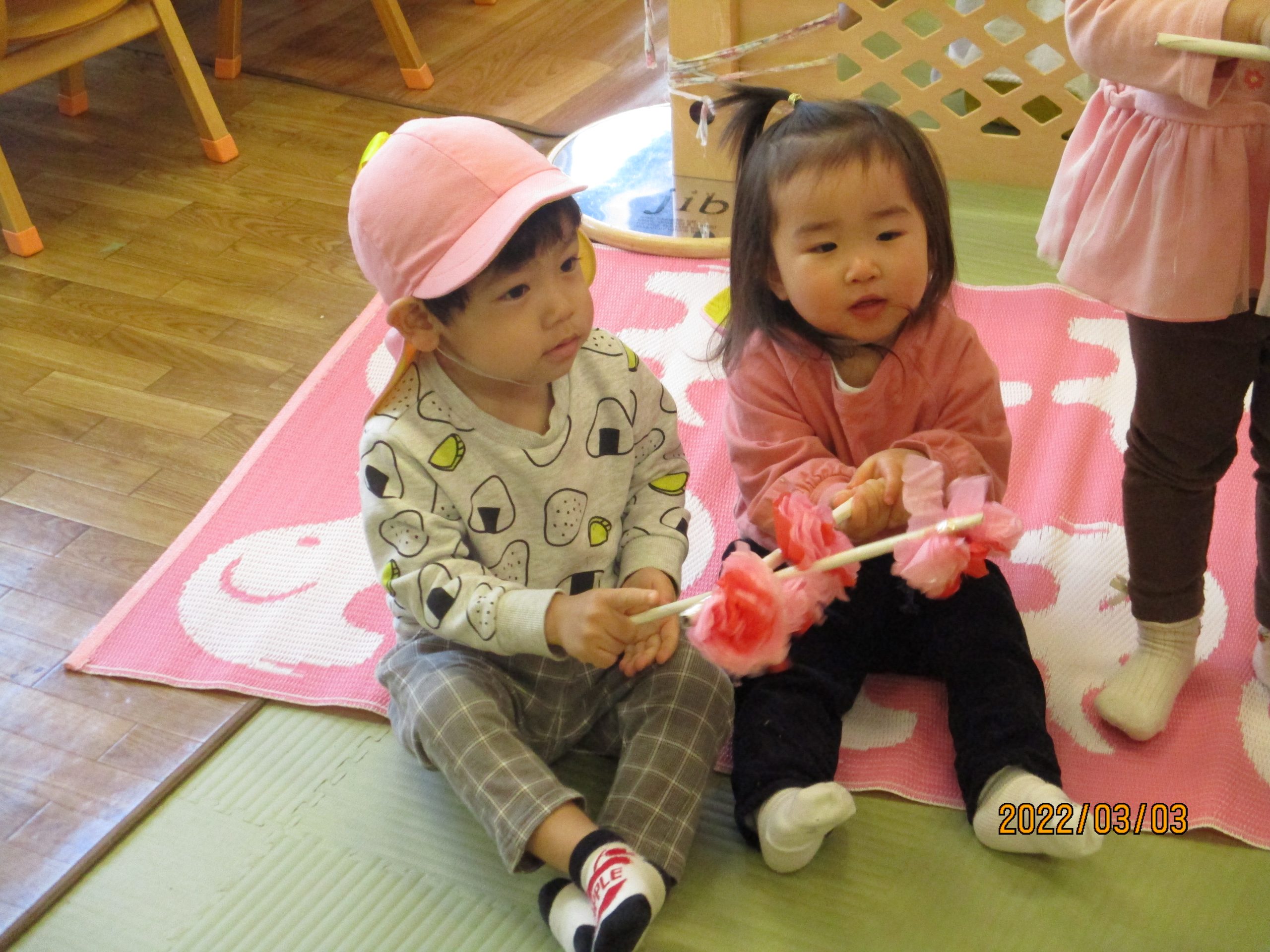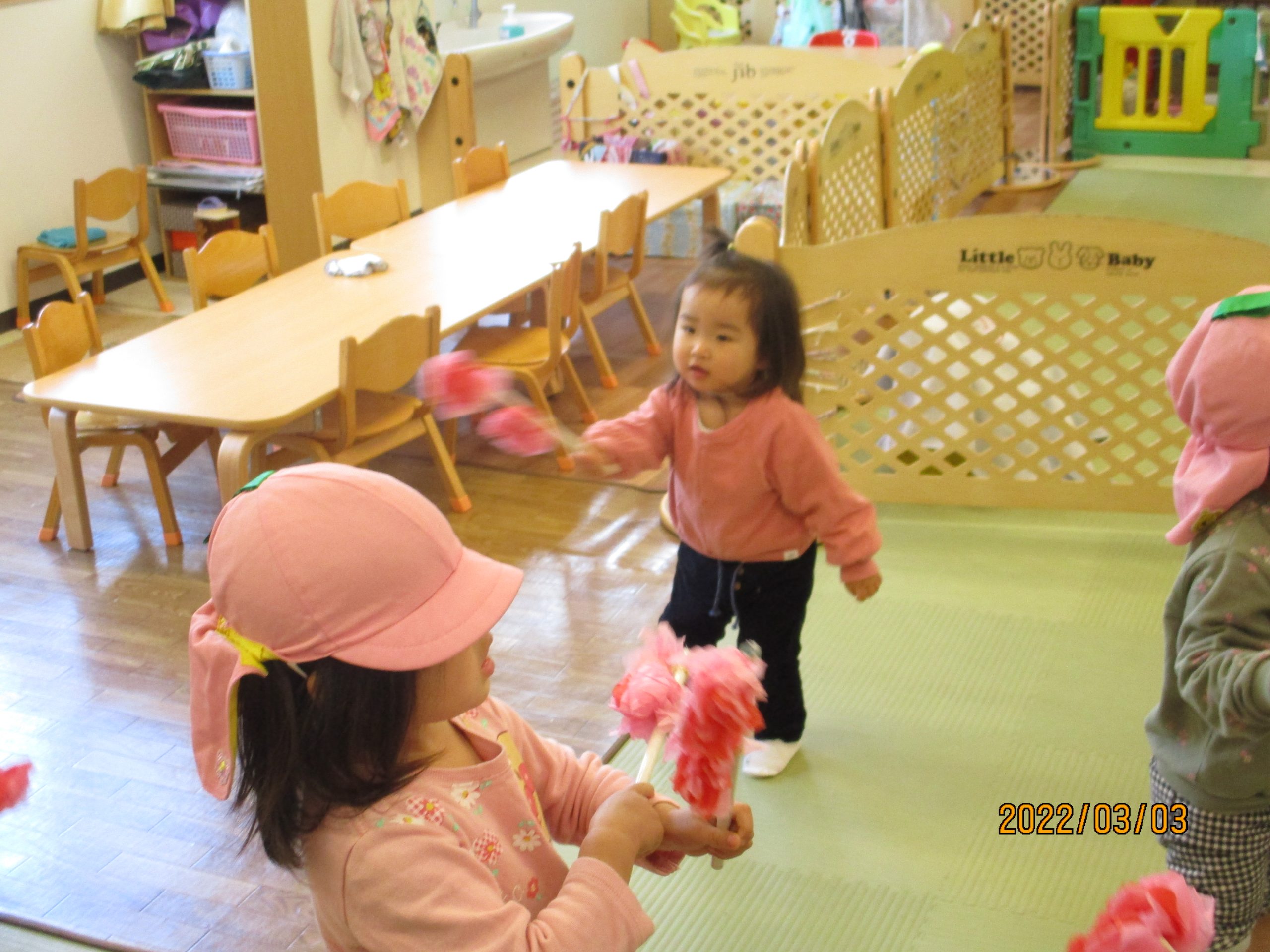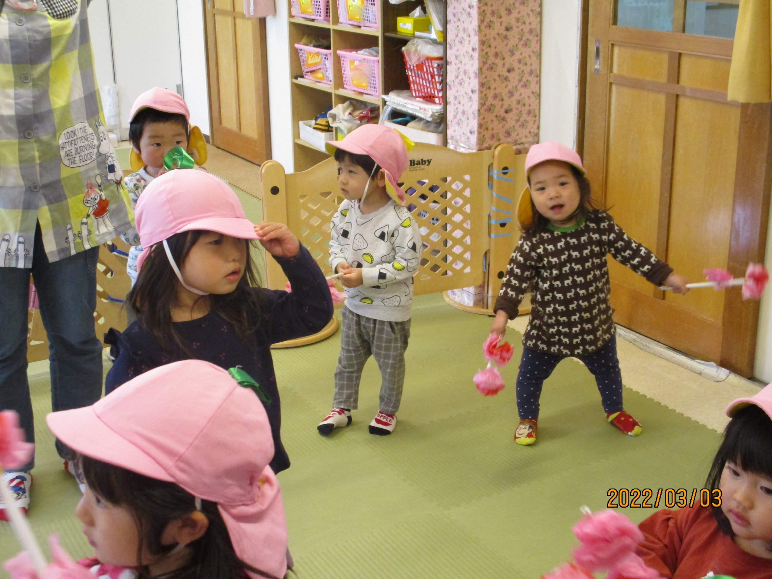 2022年3月3日 / 最終更新日時 : 2022年3月3日 Poco a Poco保育園 ぽこの日常 ひなまつりのつどい 3月3日。今日はひなまつり。 保育園でひなまつりにちなんだ小さな行事を行いました。 ひなまつりは子どもの成長をお祝いする行事で、華やかなちらし寿司を食べます。 今日の給食にもちらし寿司が出るよ、とひなこちゃんが紹介してくれました。 その後、踊りも上手に踊れるようになった子ども達は「うれしいひなまつり」を踊ってひなまつりをお祝いしました。 子ども達が健やかに成長しますように。 FacebookXBlueskyHatenaCopy
