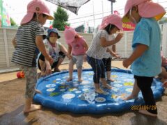 ビニール袋に入れた寒天にも触れて楽しそうでした。